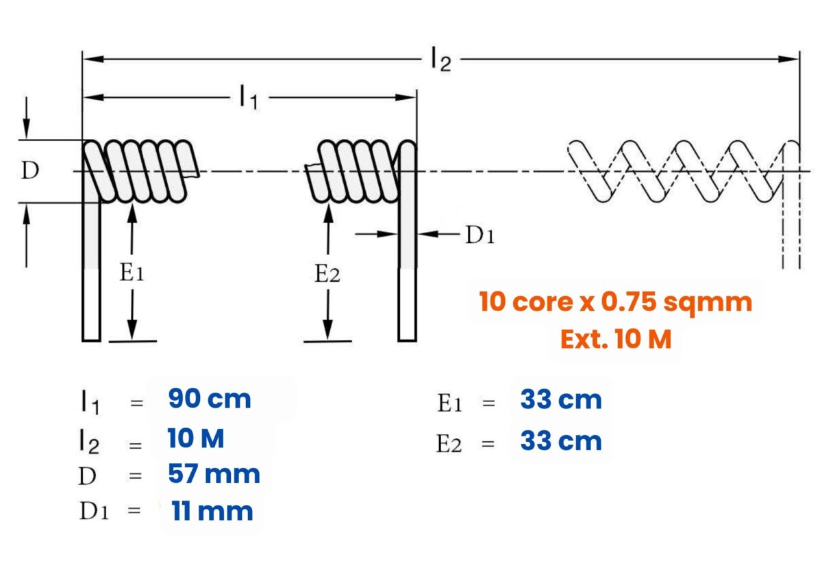 สายเคเบิล คอยล์สปริง แบบ Spiral Spring Cable ขนาด 10core, 0.75sqmm. ยืดออก 10ม.