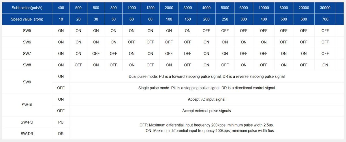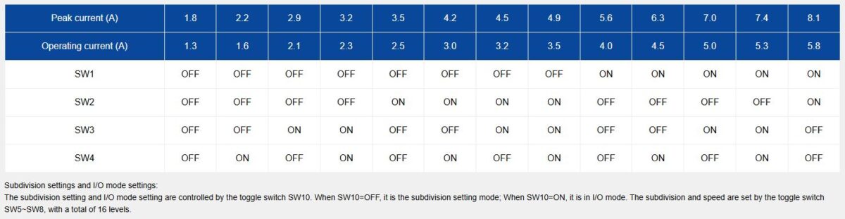 การตั้งค่ากระแสขับจะตั้งผ่าน สวิตช์ DIP SW1–SW4