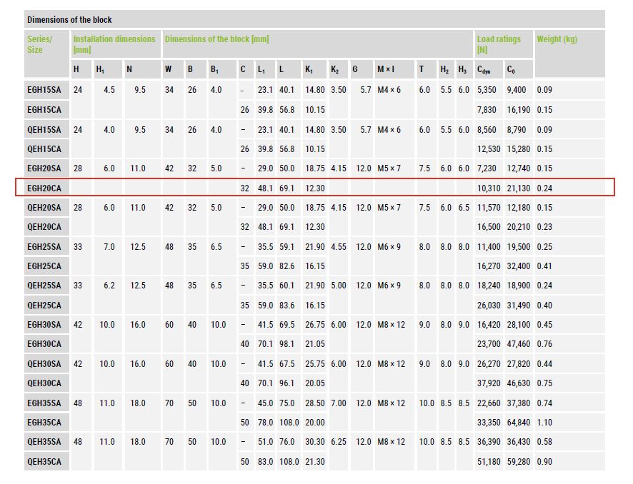คุณสมบัติเด่นของ Block Hiwin code EGH20CA-Z0