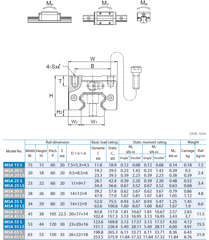 MSA25-R2000-20/20N PMI Rail PMI MSA25R2000-20/20N