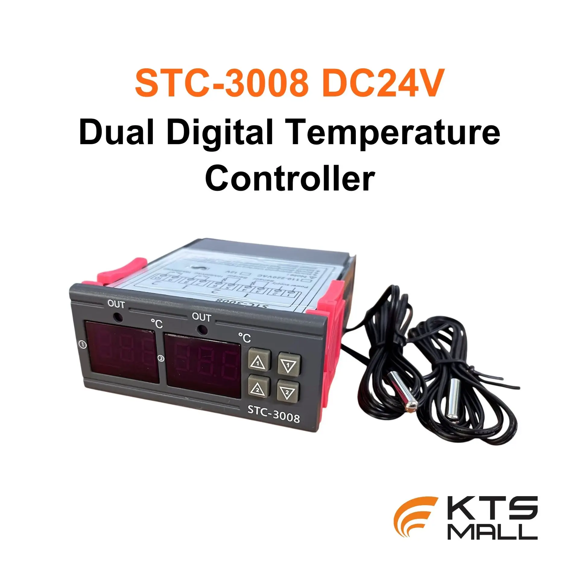 STC-3008 Dual Digital Temperature Controller รีเลย์เอาต์พุตเทอร์โมเครื่องทําความร้อนพร้อม Probe 24V บ้านตู้เย็นความร้อนเย็น